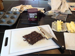 Then instead of baking the brownies off in a 9*13" pan, bake them in muffin pans. I buttered the pans really, really well since I didn't want my brownies to stick.